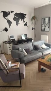 We did indeed receive the world map in good order in April. We couldn’t hang it up right away because we were still working on the room. In the meantime everything is ready and the new map is in place. Attached is a small impression.