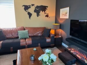 De nieuwe wereldkaart hangt inmiddels te stralen aan de muur, de extra verflaag was perfect en past nog beter bij de omgeving, waarvoor dank.