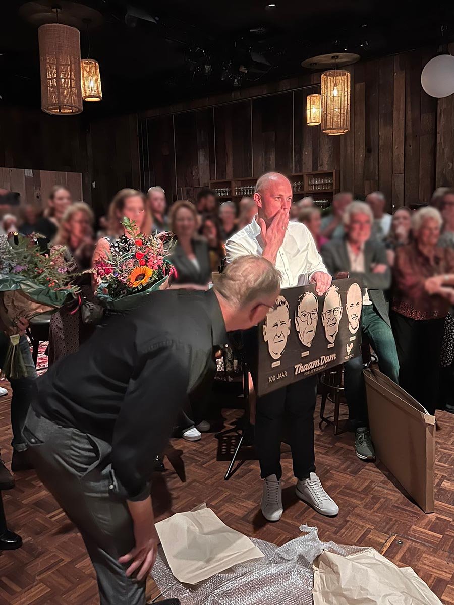 Meintje en haar collega’s wilden heel graag een mooi jubileumcadeau laten maken voor het 100 jarige bestaan van Thaam Dam, een begrip in kip. Ze wilden graag een persoonlijk cadeau met daarop vier generaties voor in hun nieuwe winkelpand.